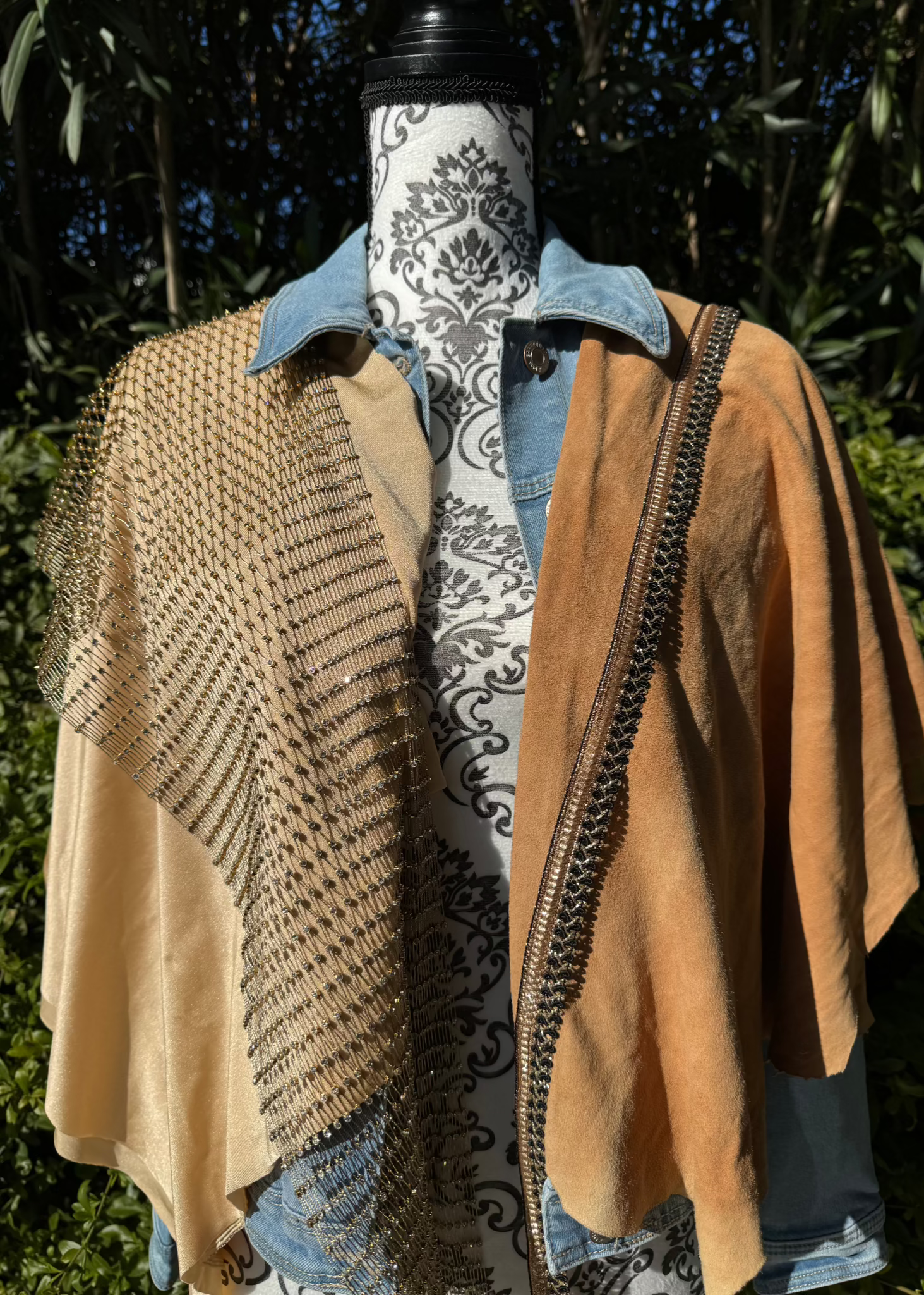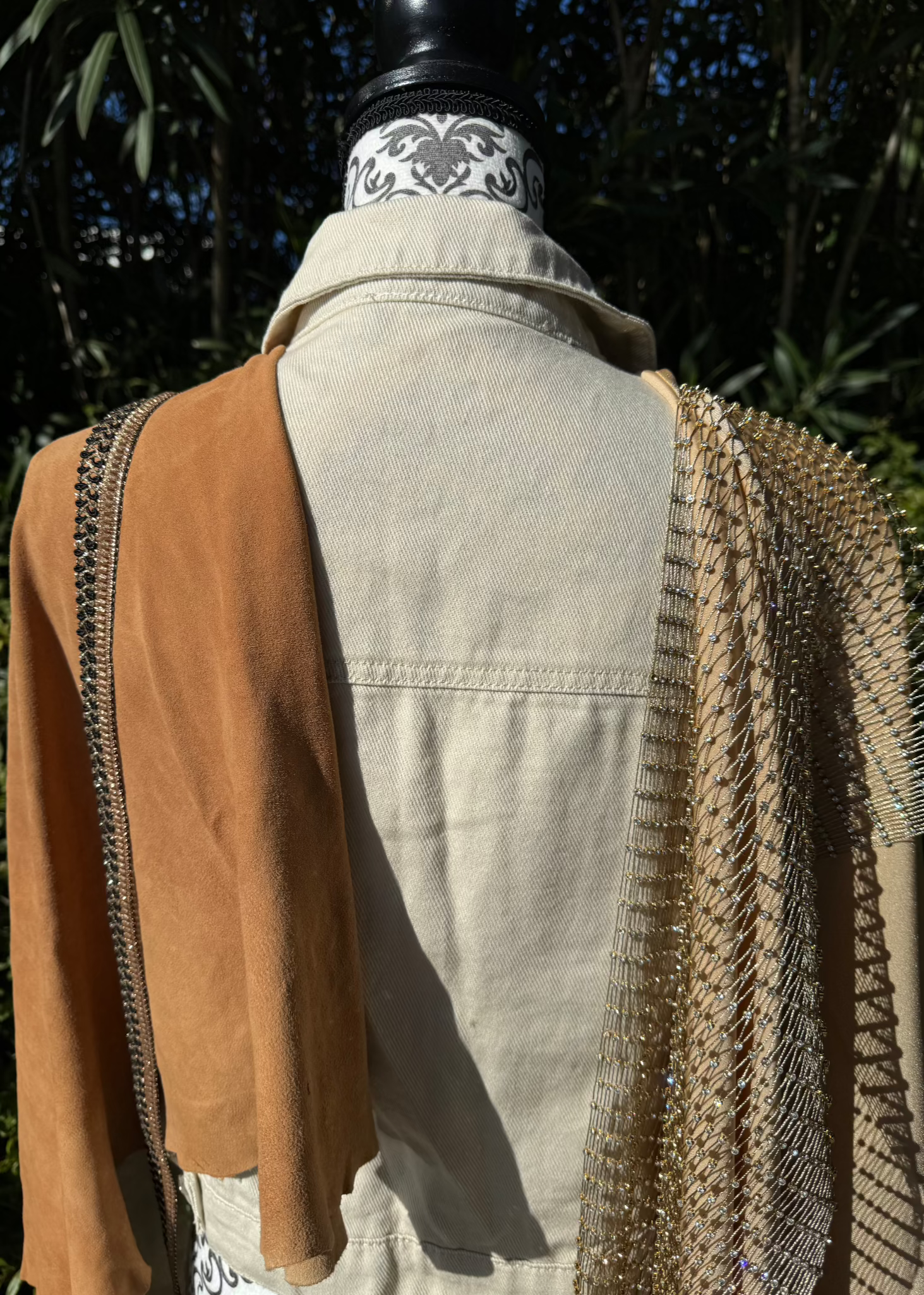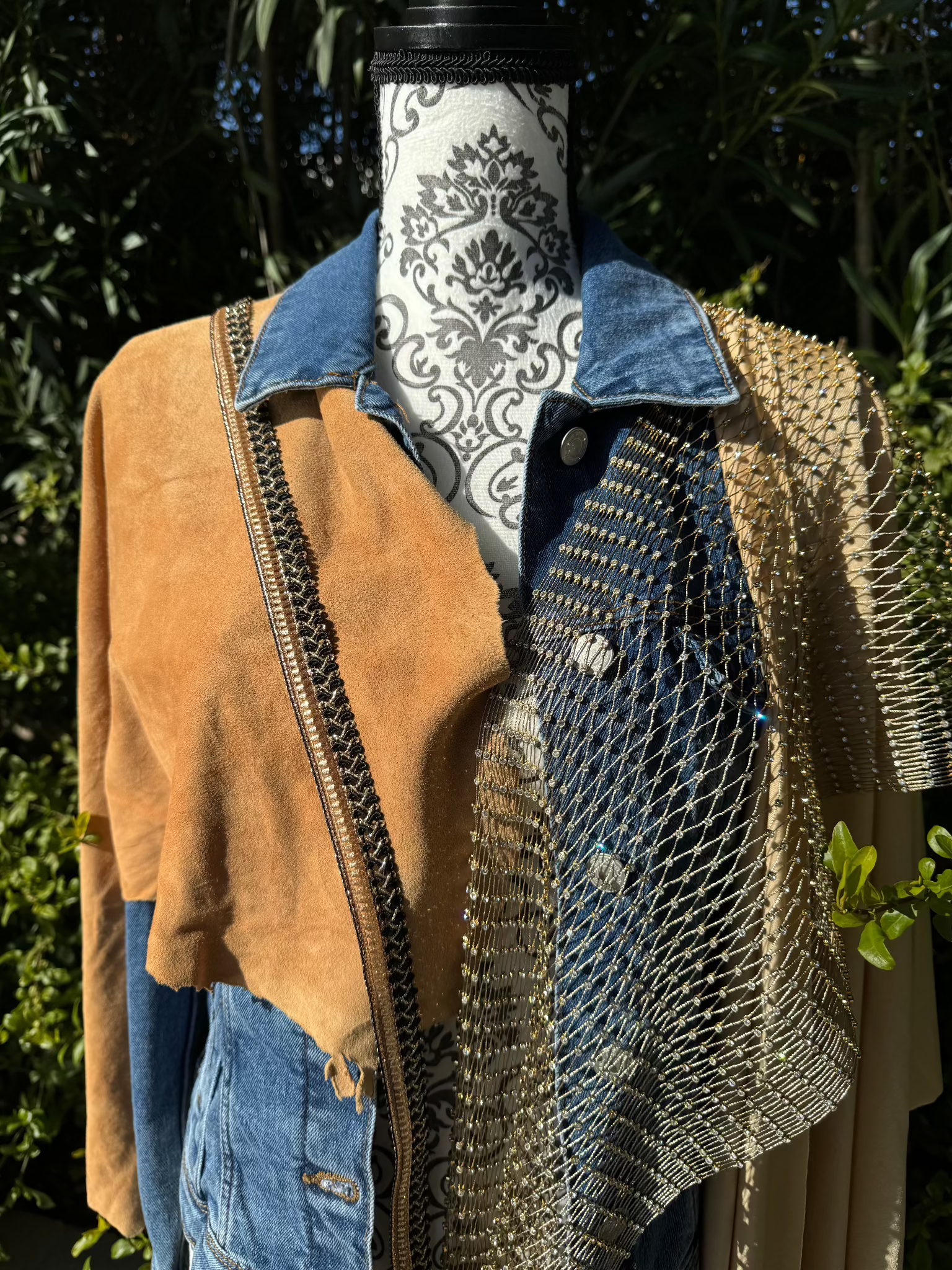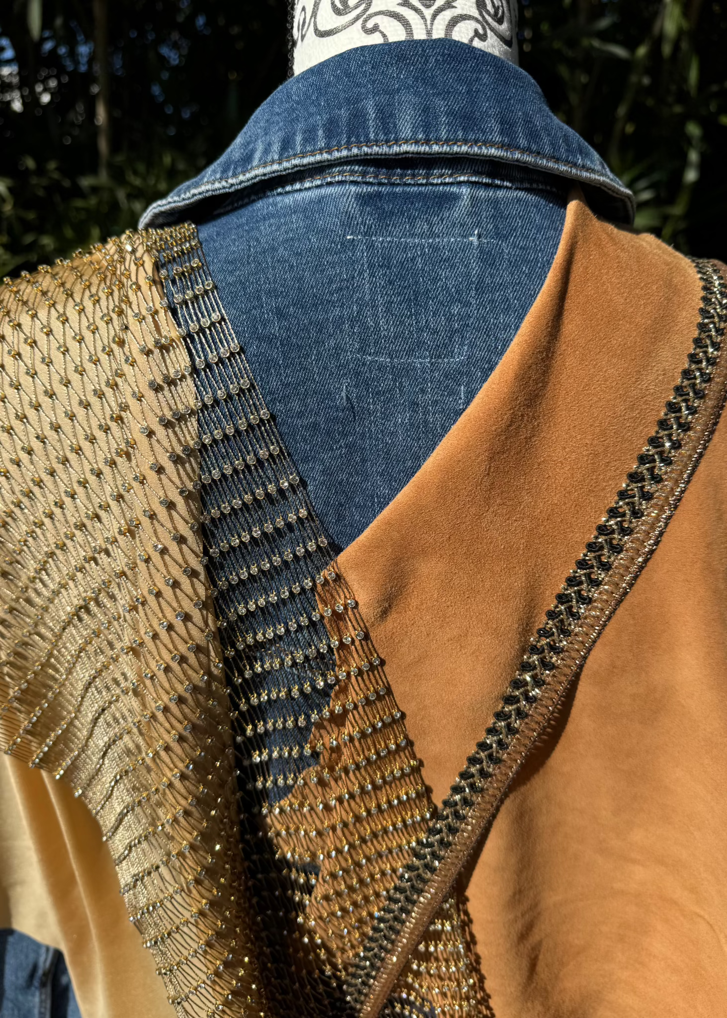 Een unieke creatie waarin texturen en sprankeling samenkomen! Radiant Elegance straalt een subtiele luxe uit met een verfijnde mix van materialen: een zacht suède accent, een glanzende crèmekleurige stof met een subtiele sparkle, en een speels netje met schitterende strassteentjes.