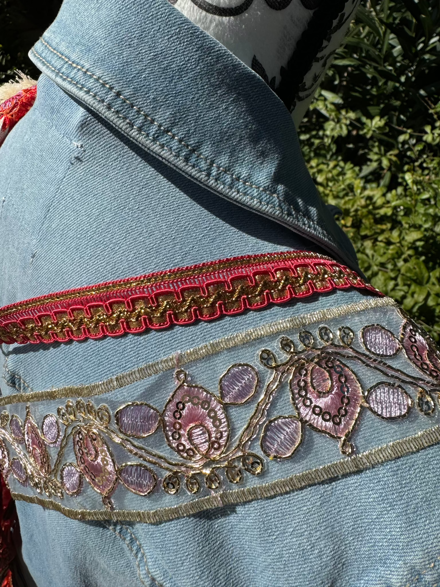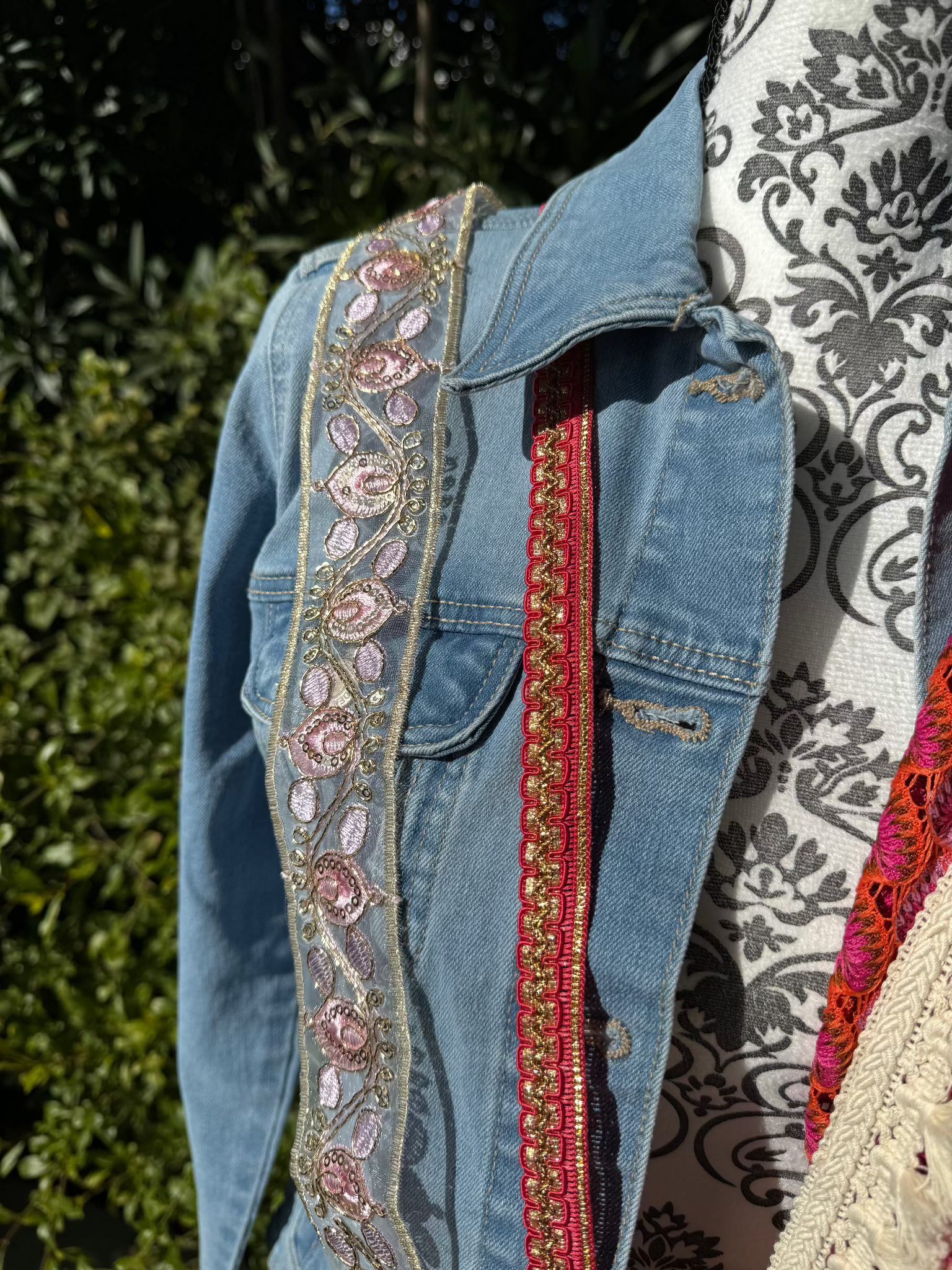 De kleurrijke banden voegen een speels contrast toe en versterken de levendige uitstraling. Dit ontwerp zal perfect tot zijn recht komen op een jasje met een diepe of neutrale basiskleur zoals crème, licht blauw of klassiek denimblauw.