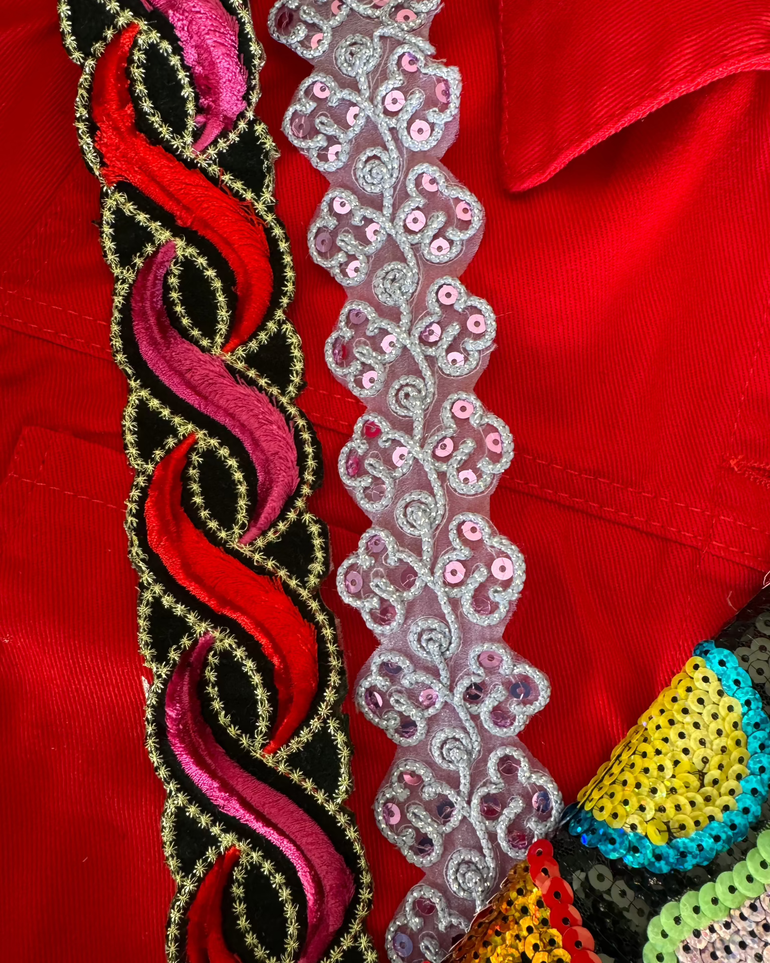 🔥 Kies je voor een explosie van kleur? Laat de pailletten en de gedurfde zwart-rood-roze band de show stelen.